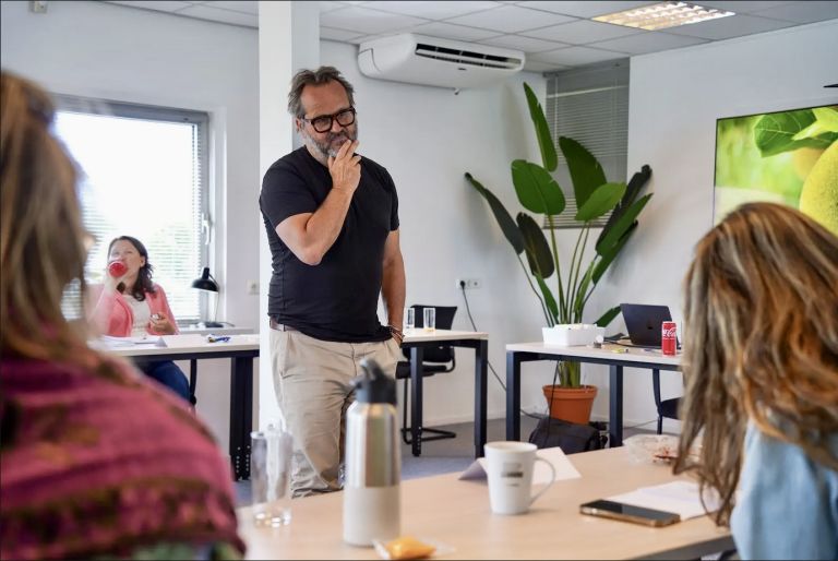 ‘Het heeft geen zin tegen een leider te zeggen dat die niet kan luisteren. Wat bereik je daarmee? Dat krijgt die waarschijnlijk thuis al elke dag te horen. Bovendien is het ook niet terecht. Ik denk dat iedereen kan luisteren. Als je maar in balans bent’.